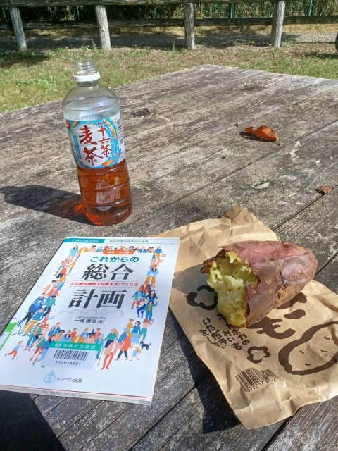 六道山に購入した焼き芋を持ち込み、総合計画の勉強をしてきました!