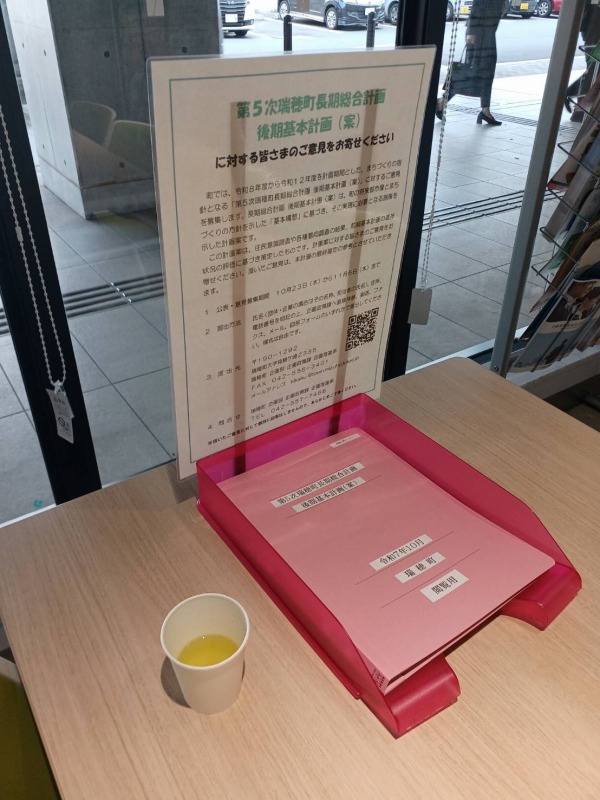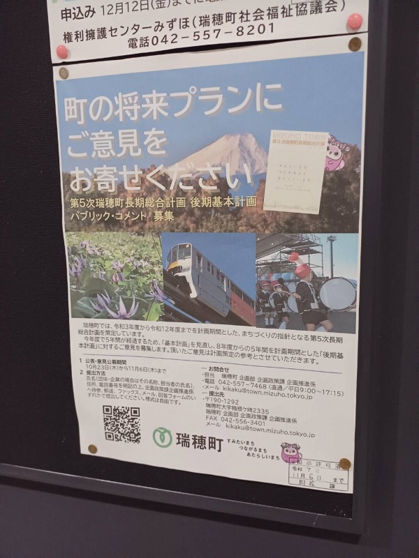 第5次瑞穂町長期総合計画後期基本計画(案) 2025-10-23 に 井上かずや公式ホームページ が投稿 — コメントを残す 第5次瑞穂町長期総合計画後期基本計画(案)に対する皆さまのご意見をお寄せください 町の長期総合計画の後期計画に対し、パブリックコメントの募集がはじまりました! 長期総合計画は町の未来を指し示す羅針盤となるものです。 みなさんの町への想いを、ぜひともパブコメで町に届けてください!!