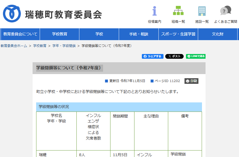 小学校と中学校で、インフルエンザで学級閉鎖になりました