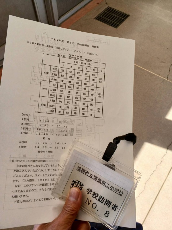 瑞穂二中の学校公開 2026-01-16 に 井上かずや公式ホームページ が投稿 — コメントを残す 今日は瑞穂第二中学校の学校公開日。ということで、生徒みなさんの授業風景を見せていただきました。 3年生の授業では、受験前ということもあり、独特の緊張感を感じました。生徒のみなさん、学校生活そして勉強に、頑張ってくださいね! 先生方も子どもたちへのご指導、ありがとうございます!
