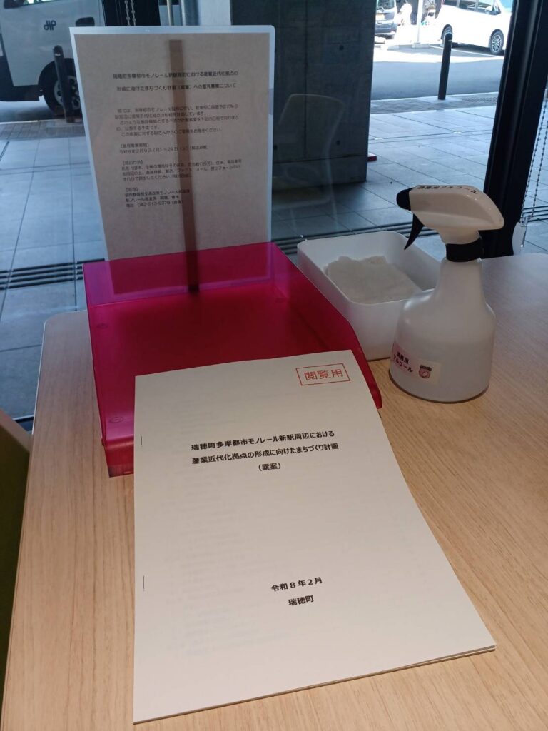 瑞穂町多摩都市モノレール新駅周辺における産業近代化拠点の形成に向けたまちづくり計画(素案)への意見募集について