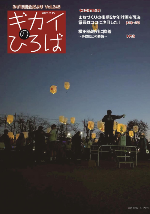 ギカイのひろば(瑞穂町議会だより) 2026-02-15 に 井上かずや公式ホームページ が投稿 — コメントを残す Vol.248(令和8年2月15日発行)のギカイのひろば(議会だより)が発行されました。ご自宅のポストに届いているかと思いますので、お手すきの時にでもご確認いただけれるとうれしいです! 議会だよりPDF令和7年度(Vol.245からVol.248まで)